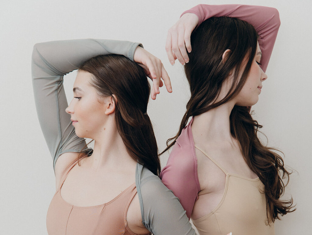 Another standout trend in 2026? Layers. Mainstream fashion magazine Elle pointed to intentional layering as a dominating presence at New York Fashion Week, and that multipiece look has trickled into dancewear. Sheer designs that reveal the base layer of the outfit (or that give the illusion of doing so) are especially popular and nostalgically evoke DIY tops and shorts made from cutting old tights.