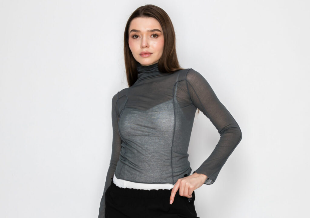 Examples: Mondor recently dropped its mesh-top Ravena leotard, which features a mesh top enabling dancers to show off the garments they’re wearing underneath. Intermezzo’s sheer Eutenea crop top offers a relaxed fit with lettuce-edge hems, while Aluvie’s Zen top, crafted from a see-through blend of Supima cotton and nylon, boasts a high neck with exposed seams. For a layered illusion, Italian brand DellaLo’s Mania CL leotard combines mesh sleeves with a fabric panel across the bust. And designed with younger dancers in mind are several of Mexico-based brand Daroch’s newest layered pieces.
