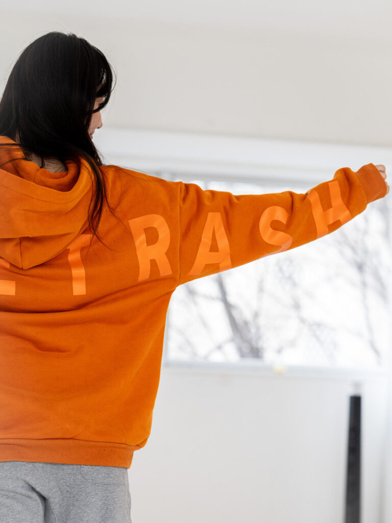 Examples: In recent years, Barre Trash has attracted attention for its best-selling Oversized Hoodie, which will offer more color options, including powder blue, canary yellow, and sunset orange this spring. The design of Covet Dance’s Tutu Crew Sweater adds a varsity vibe with a bunhead pun, and Oh La La’s Babe Hoodie offers an edgier look with a black base and metallic foil stars down the sleeve.